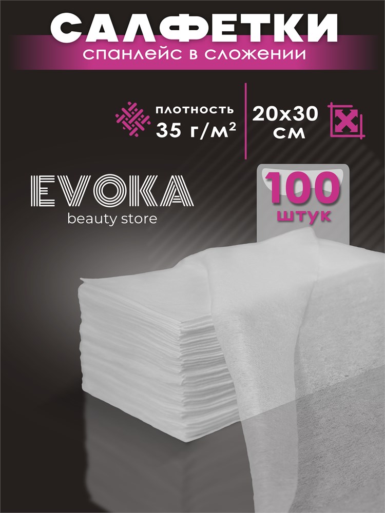 Салфетка в сложении, размер 30x40 см, плотность 35, количество 100 штук.